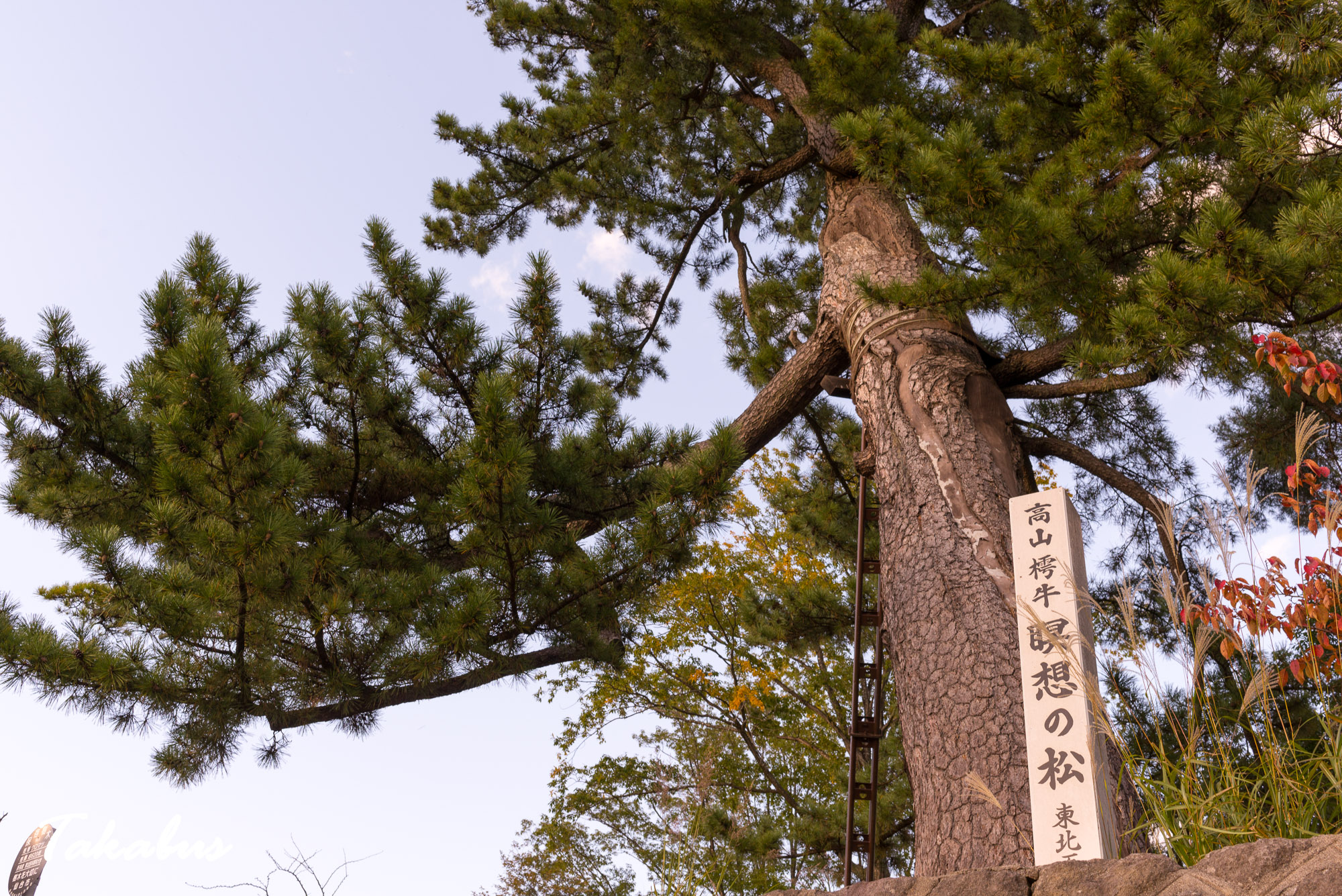 こちらが瞑想の松。高山 樗牛という偉人がこの松の下で瞑想したとの言い伝えから、「瞑想の松」と呼ばれるようになったそう。